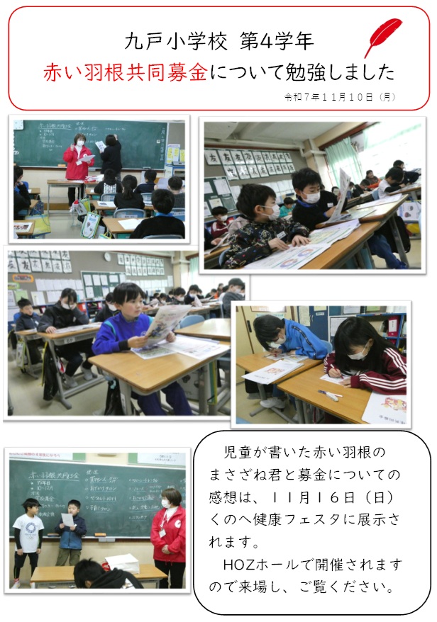 九戸小学校第4学年 赤い羽根共同募金について勉強しました。