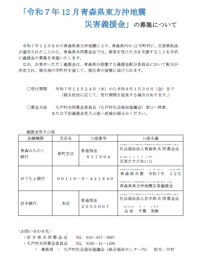 「令和7年12月青森県東方沖地震 災害義援金」の募集について