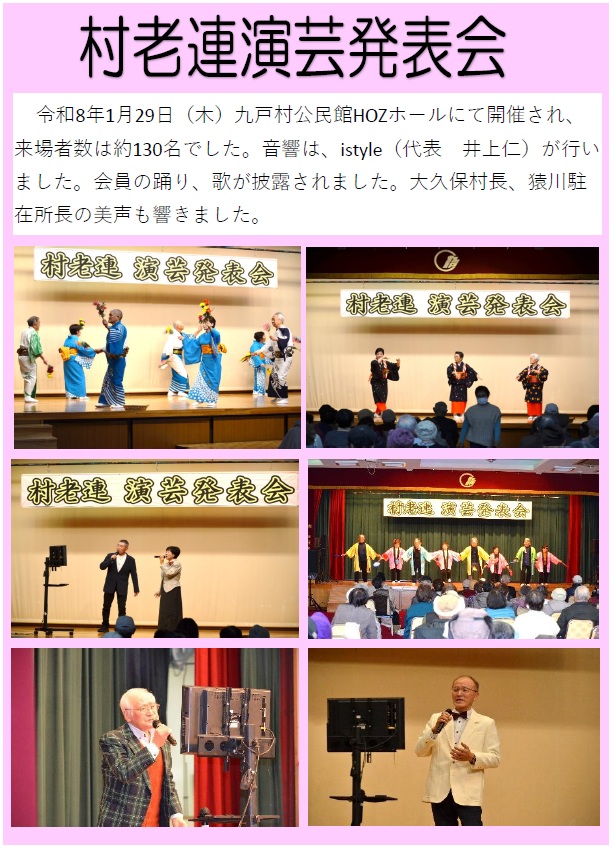令和8年1月29日(木)に❝村老連演芸発表会❞を開催しました。